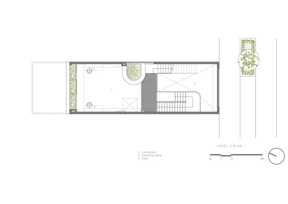 Tầng lửng được tô điểm bởi cây xanh giếng trời và ánh sáng từ nhiều nguồn rọi tới. |