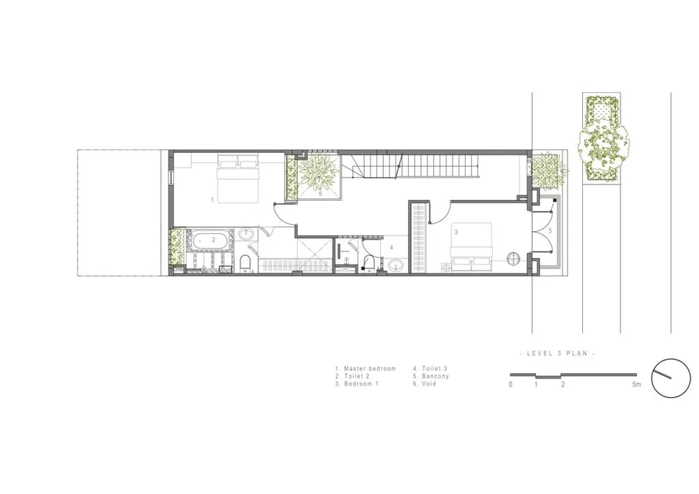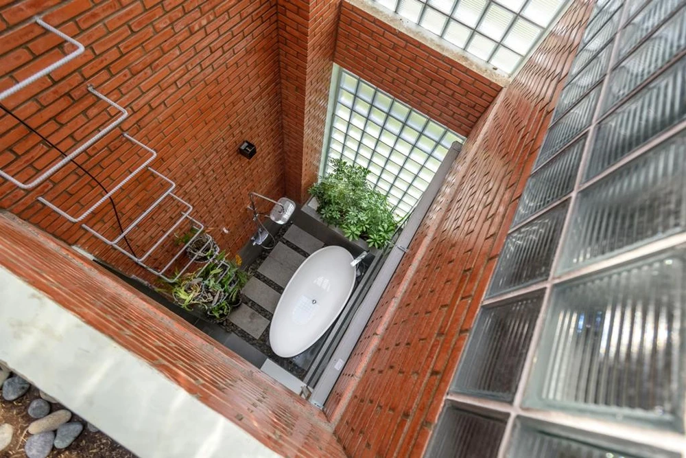 Điểm nhấn của ngôi nhà là một không gian nhỏ nhưng khá đặc biệt, một thông tầng xuyên mái từ khu vệ sinh của phòng ngủ master. |