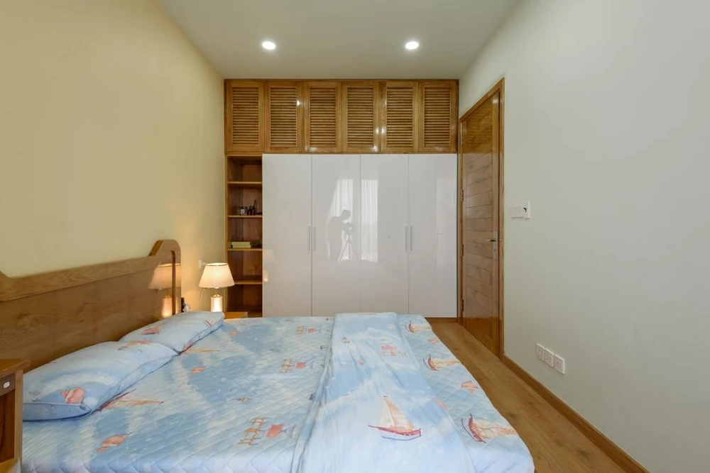 Phòng ngủ có sàn bằng gỗ. |