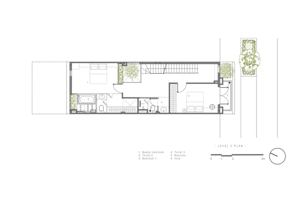 Cách xử lý khéo léo của kiến trúc sư tạo sự kết nối không gian và ánh sáng cho tầng ba và bốn của ngôi nhà. |