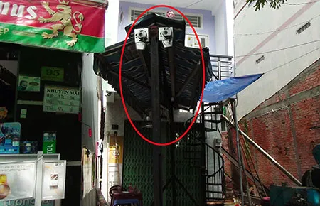 Căn nhà xảy ra sự cố nghiêng mạnh ở đường Rạch Bùng Binh (quận 3) làm cho mọi người sống trong nhà phải di tản ra ngoài. Ảnh: XN