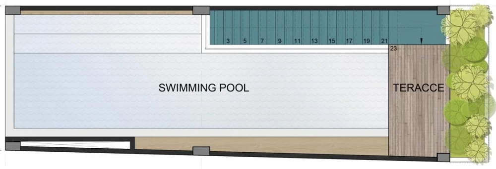Sân thượng là khu vực giải trí, nghỉ ngơi và tái tạo năng lượng của cả gia đình. Một tổ hợp tiện ích hiếm có gồm hồ bơi và khu tập yoga.