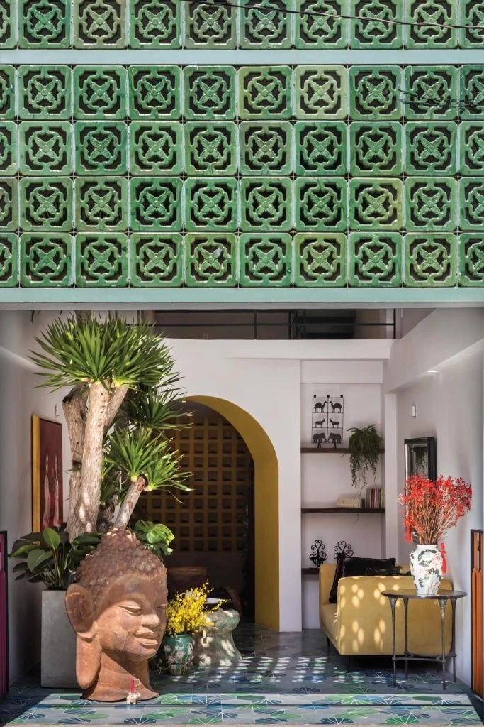 Các loại gạch bông gió được sử dụng ở phía mặt tiền và hai bên sân thượng giúp cho ngôi nhà thông thoáng hơn.