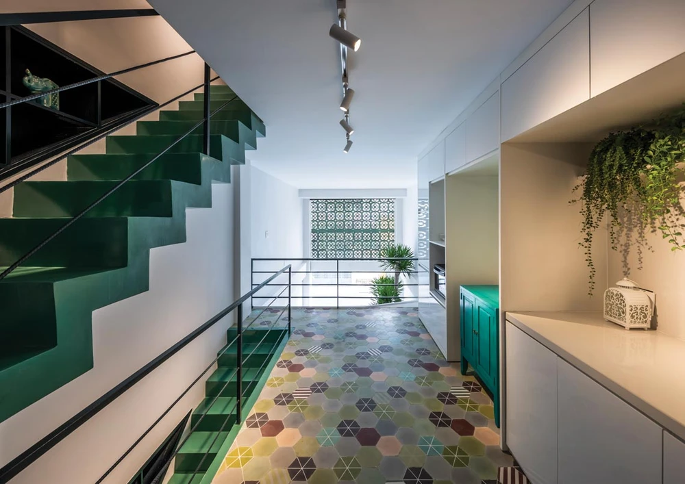 Các mảng màu, hoa văn gạch lát sàn và hệ thống chiếu sáng để tạo nên vẻ sinh động, trẻ trung và mang lại cảm giác nhiều năng lượng.