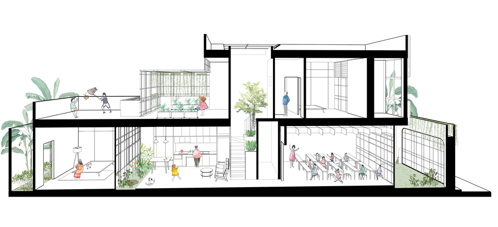 Từ đó, tất cả các không gian đều được tiếp xúc với cây xanh và ánh sáng tự nhiên.
