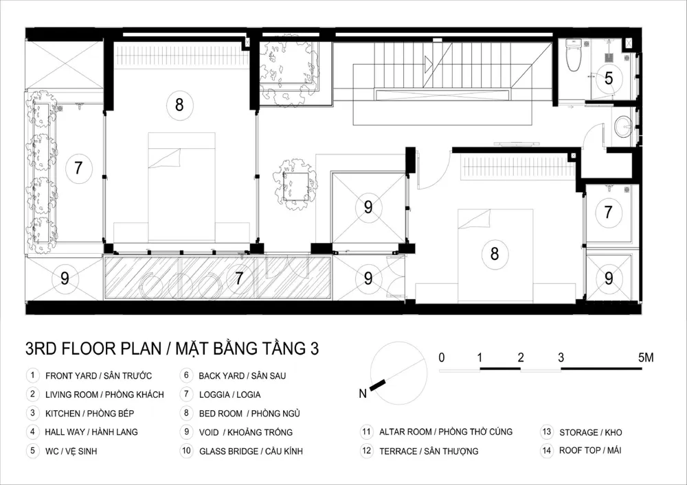 Từ đó tạo ra nhiều không gian ngoài trời ở các cao độ khác nhau và tăng hiệu quả thông gió, chiếu sáng tự nhiên.