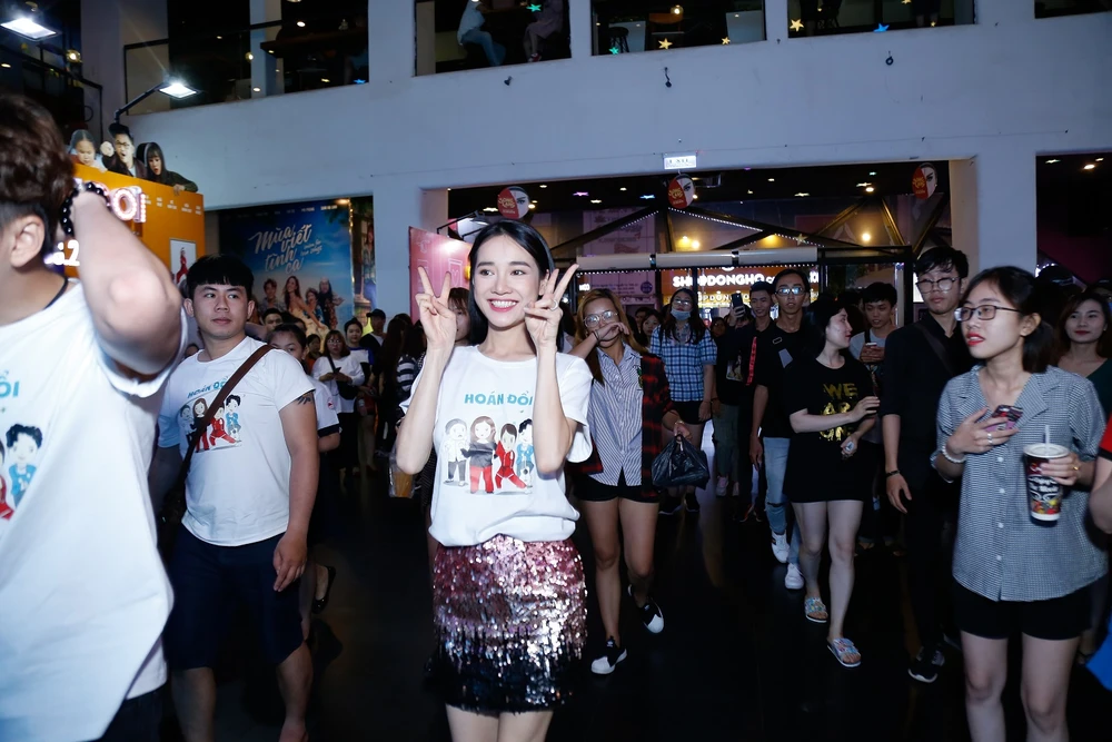 Tối qua (30/8), khán giả có mặt tại rạp chiếu phim Galaxy Kinh Dương Vương và Cinestar Quốc Thanh vô cùng bất ngờ trước sự xuất hiện của Nhã Phương và dàn diễn viên phim Hoán Đổi đến giao lưu cùng khán giả xem phim. Xuất hiện đơn độc mà không có danh hài hộ tống bên cạnh, tuy nhiên điều đó không khiến cho vợ chưa cưới của Trường Giang thiếu đi vẻ rạng ngời và tươi tắn. Nhã Phương xuất hiện đầy tự tin và năng động trong bộ trang phục áo thun trắng, chân váy ngắn trẻ trung và nụ cười rạng rỡ.