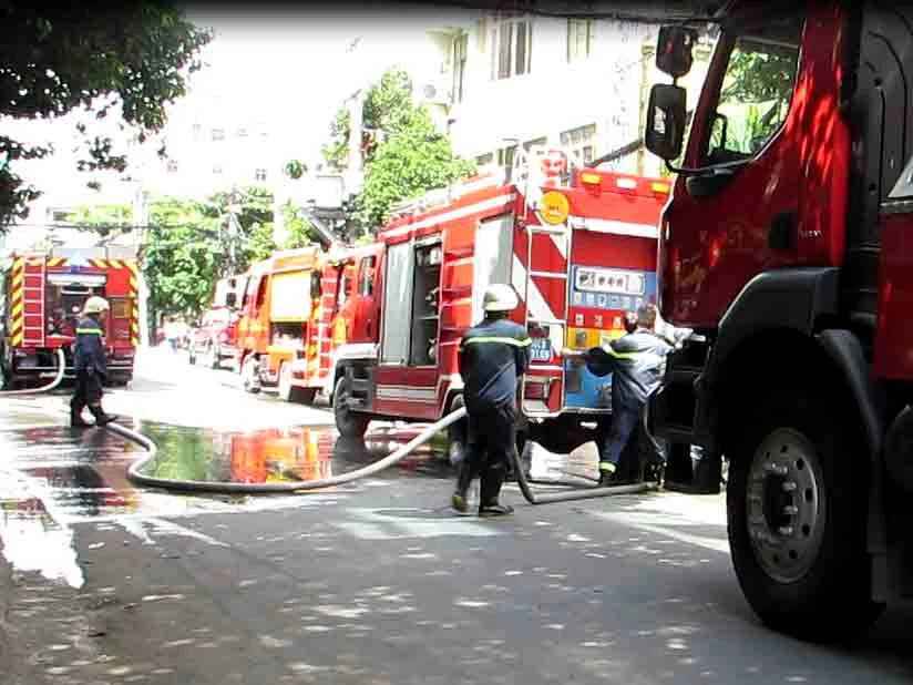 Nhận được tin báo, lực lượng PCCC Quận 1 điều 6 xe chữa cháy cùng hàng chục cán bộ, chiến sĩ đến hiện trường để triển khai công tác dập lửa.