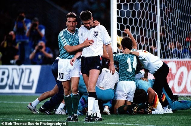 Vẻ mặt đầy tâm trạng của Paul Gascoigne trong loạt sút luân lưu giữa Anh và Đức ở bán kết World Cup 1990. ẢNH: GETTY