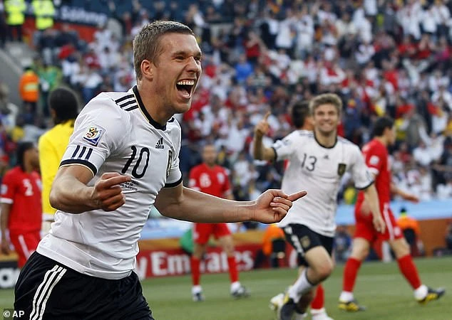 Lukas Podolski ăn mừng bàn thắng vào lưới Anh trong trận Đức thắng 4-1 ở World Cup 2010. ẢNH: AP