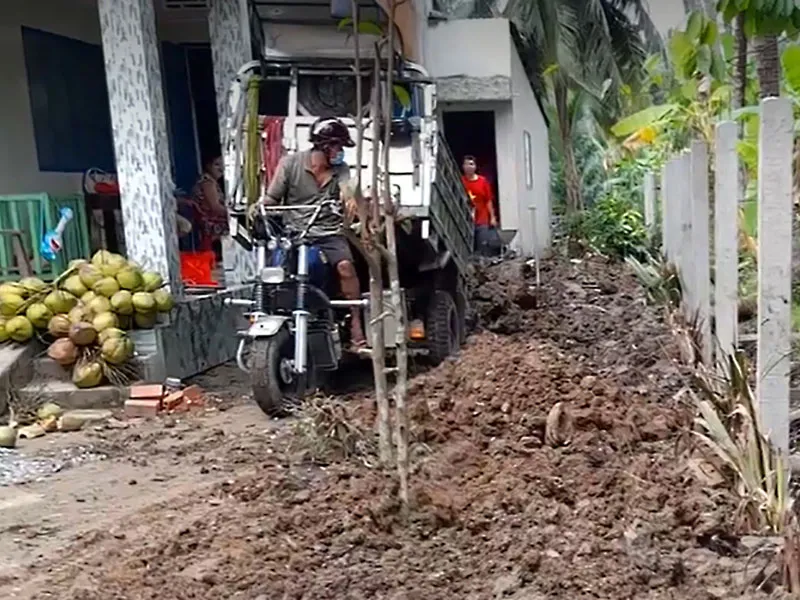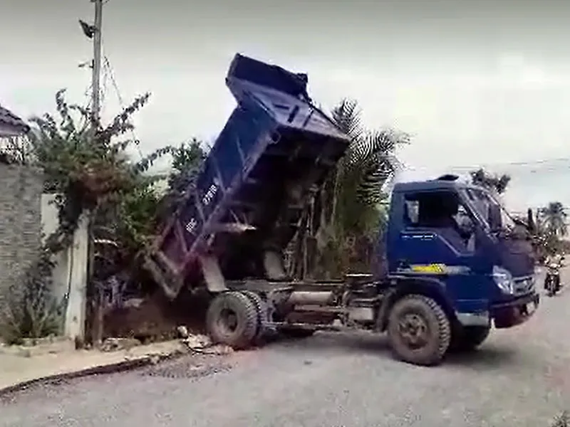 Cũng trưa cùng ngày, một xe Hoa Lâm sau khi lấy đất tại công trình, tài xế đã chạy vào một con hẻm nhỏ ở ấp 3, xã An Khánh để bán cho người dân san lấp mặt bằng.