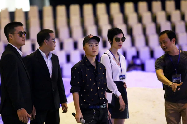 Giám đốc sản xuất show diễn Phạm Huy Cận (khoanh tay) luôn sát cánh cùng Đỗ Mạnh Cường.
