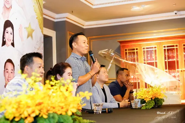 Việt Hùng (đứng) đang nói về hậu trường người mẫu sau sàn diễn thời trang.