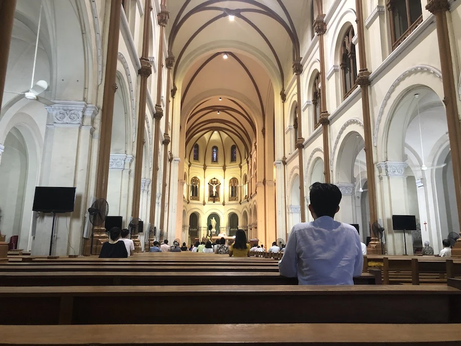 Tuỳ tình hình dịch bệnh địa phương mà các giáo xứ tổ chức Thánh lễ giới hạn số lượng người. Trong ảnh: Một Thánh lễ trước khi có đại dịch COVID-19 ở Nhà thờ Chính toà Đức Bà Sài Gòn. Ảnh: Q.T