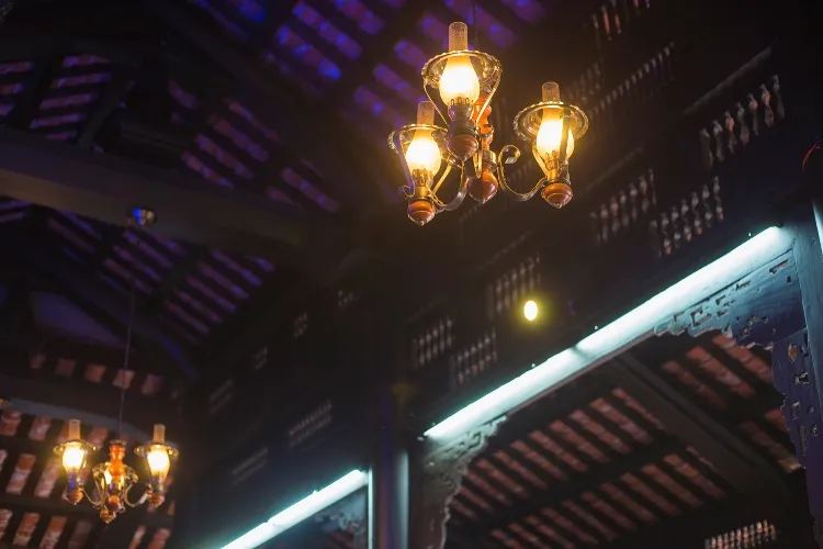 Đèn cổ và các họa tiết hoa văn cổ trên xà