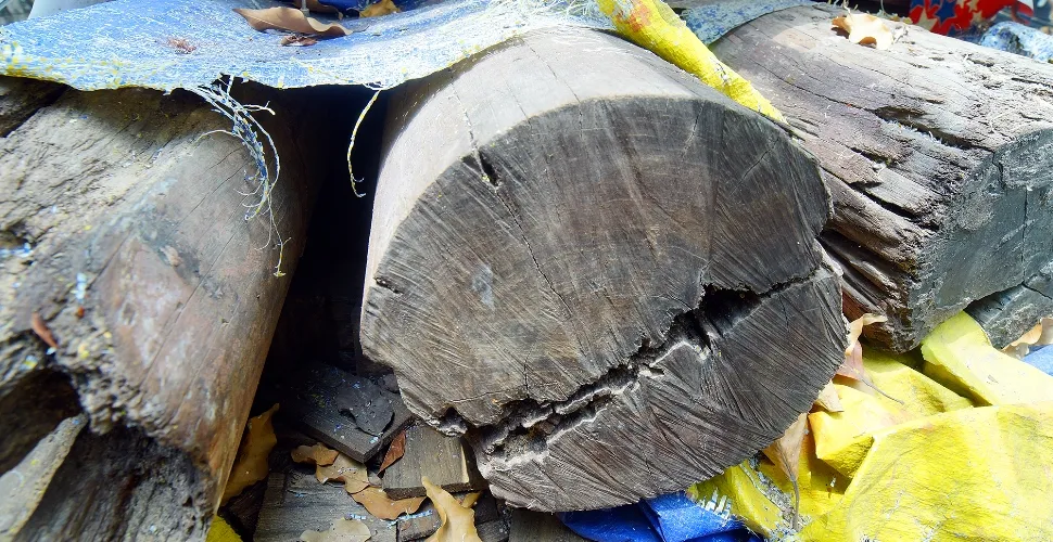 Ba cây cột cũ cất trong kho chờ trưng bày