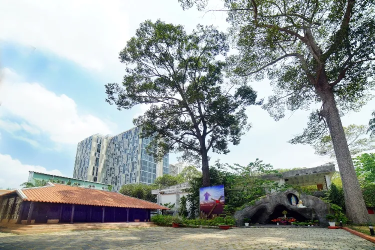Dinh Tân Xá nằm nhỏ gọn trong góc sân Tòa Tổng Giám Mục