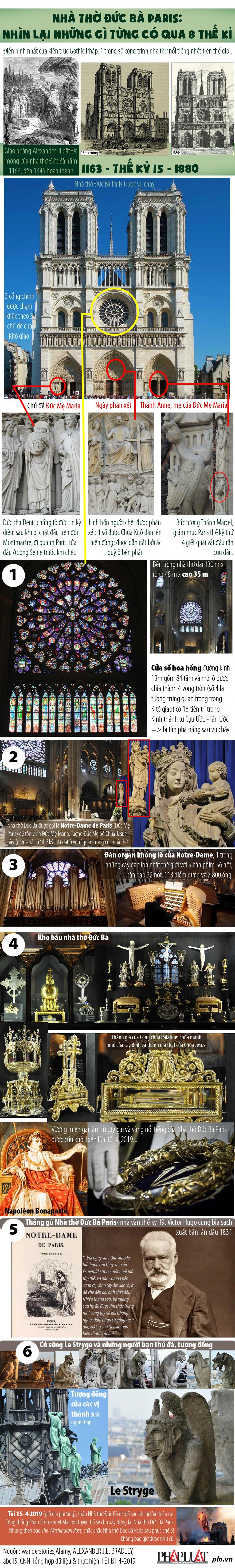 (PLO)- Tối 15-4, vụ cháy Nhà thờ Đức Bà – công trình kiến trúc cổ, biểu tượng của nước Pháp – gây chấn động và bàng hoàng lớn không chỉ với nước Pháp mà cả thế giới. Cùng nhìn lại những điều nhân loại từng có ở đây suốt 8 thế kỷ qua.