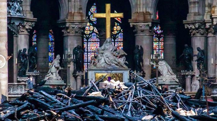 Những gì còn lại bên trong Nhà thờ Đức Bà Paris. Ảnh: HUFFPOST