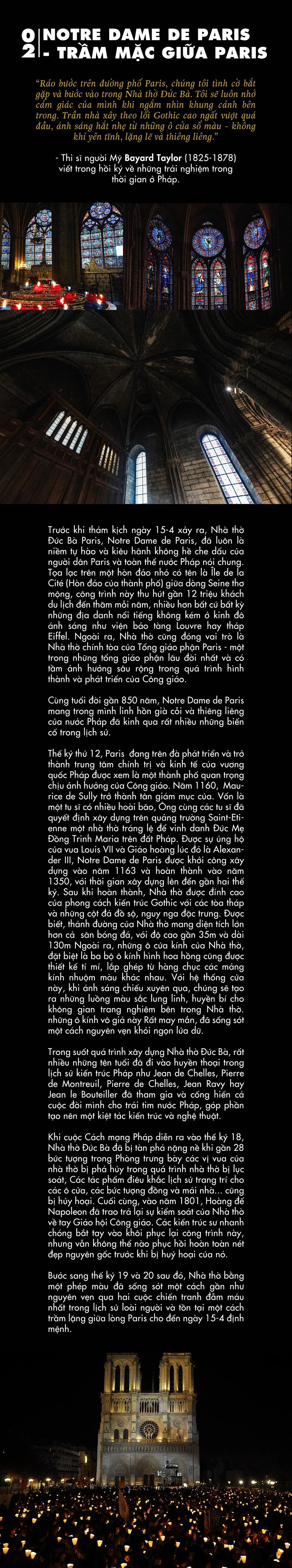 Một nhân chứng khác, nhà thiết kế người Mỹ Sophia Foreno run rẩy kể lại khoảnh khắc kinh hoàng cho CNN: Lúc đó, chúng tôi đang đi bộ theo thói quen hàng ngày từ khi tới đây. Chúng tôi đi về phía sông Seine, rẽ phải theo hướng Nhà thờ Đức Bà, rồi đột nhiên nhìn thấy công trình chìm trong biển lửa"