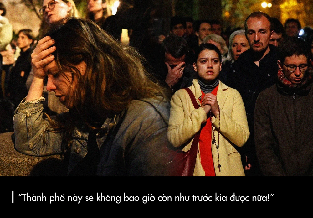 James McAuley, phóng viên thường trú của tờ Washington Post ở Paris miêu tả cảnh tượng cầu nguyện trước Nhà thờ Đức Bà là “không thể nào diễn tả sự kinh ngạc, sự yên tĩnh đáng sợ, và những giọt nước mắt khóc thương cho 800 năm lịch sử biến mất chỉ trong tích tắc.”