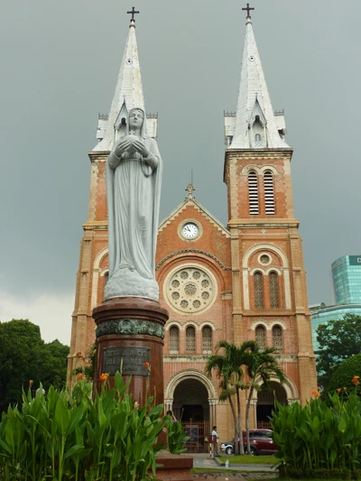Xây dựng vào năm 1877, Nhà thờ Đức Bà có chiều dài 93 m, rộng 35 m, cao 75 m phong cách kiến trúc Roman cải biên pha trộn nét phong cách kiến trúc Gô tích nằm ngay trung tâm Quận 1 thành điểm đến của du khách trong và ngoài nước.
