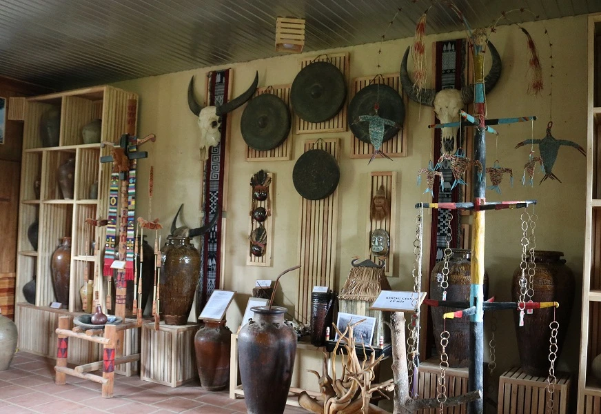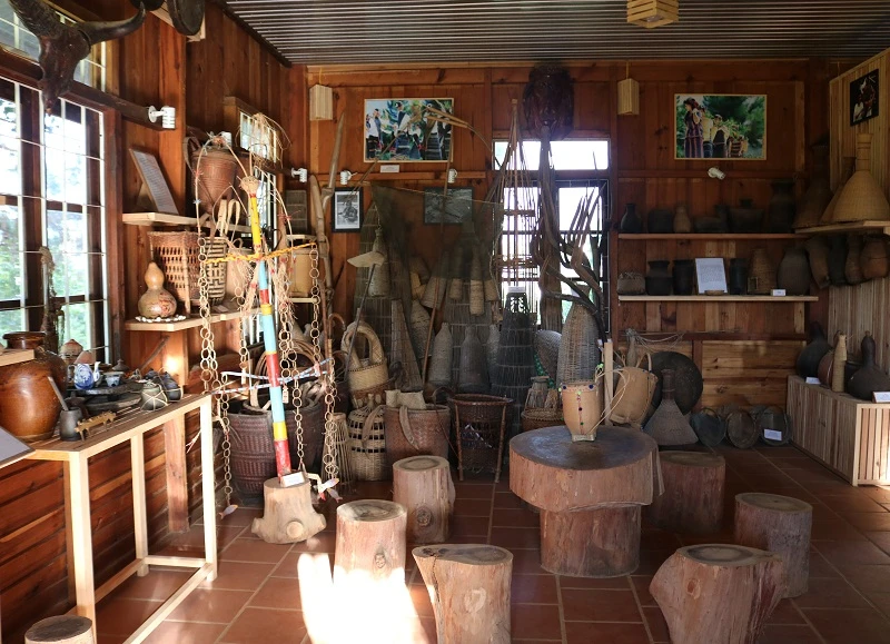 Trong khuôn viên nhà thờ có một gian phòng trưng bày những dụng cụ sinh hoạt hằng ngày, từ bếp núc đến những tục lệ truyền thống của người dân Chu Ru...