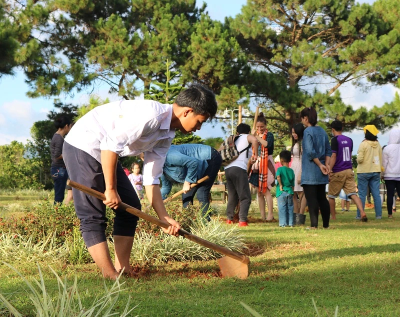 Rất nhiều người dân Churu và mọi người xung quanh thường xuyên đến đây để tham gia trồng cây xanh, tạo không gian trong lành cho nhà thờ. ẢNH: THANH TUYỀN.