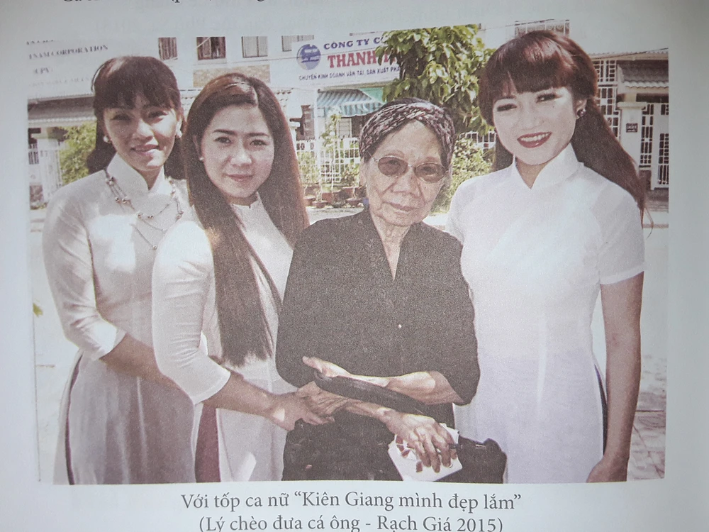 Nữ nhà thơ Lê Giang (thứ hai từ phải qua) với tốp ca nữ "Kiên Giang mình đẹp lắm".