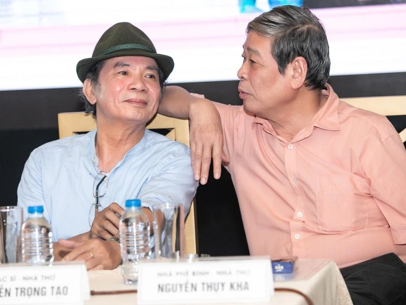 Nhà thơ, nhạc sĩ Nguyễn Trọng Tạo (trái) và Nguyễn Thụy Kha.