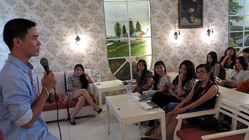 Nhà thơ Nguyễn Phong Việt tại buổi giao lưu ra mắt sách. Ảnh: L.Đ