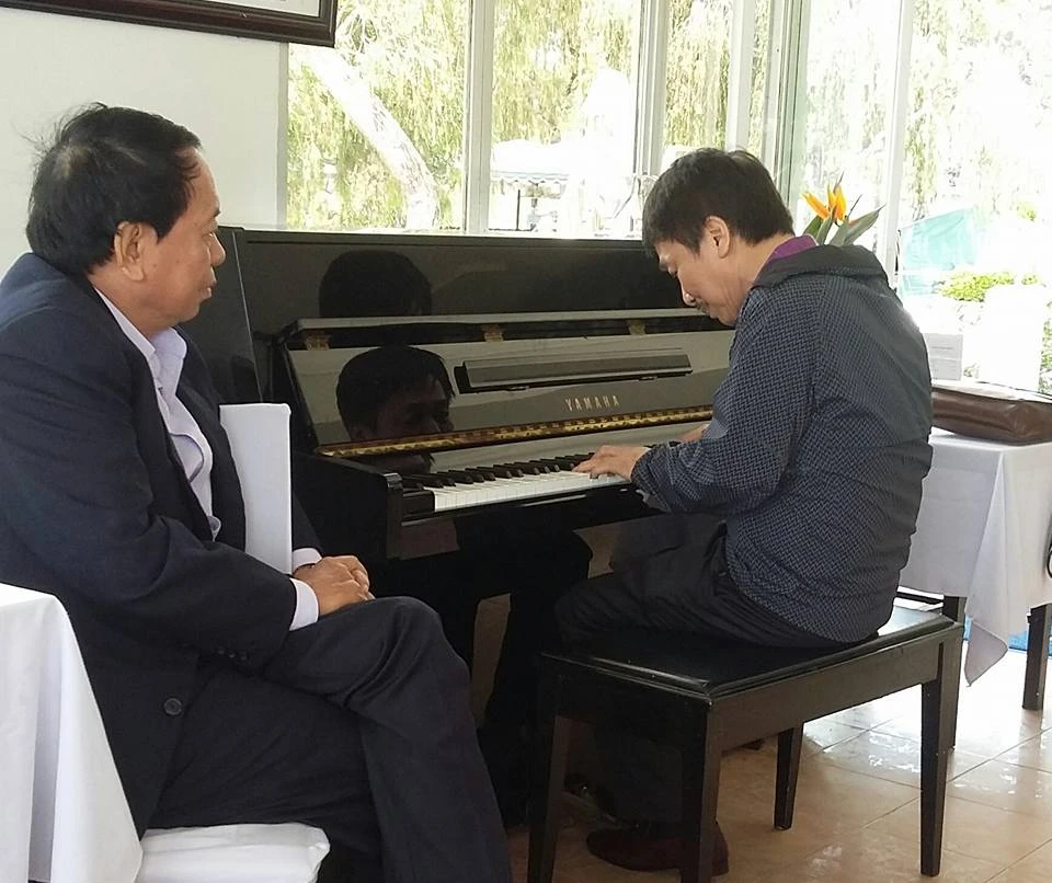 Cố nhạc sĩ Phú Quang và nhà thơ Thái Thăng Long. Ảnh: NVCC.