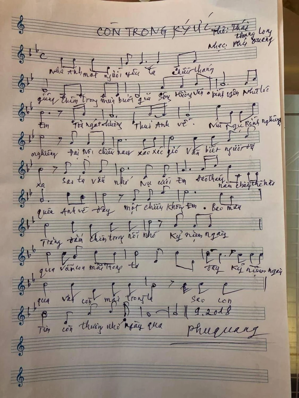 Bài hát cuối cùng cố nhạc sĩ Phú Quang phổ nhạc năm 2018 do nhà thơ Thái Thăng Long sáng tác. Ảnh: NVCC.