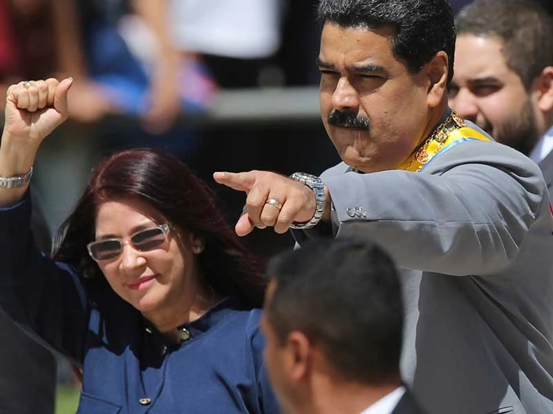 Tổng thống Venezuela Nicolas Maduro (phải)cùng đệ nhất phu nhân Cilia Flores trong một sự kiện vận động chính trị ở thủ đô Caracas ngày 1-2. Ảnh: AP