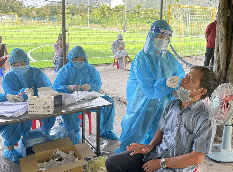 Lấy mẫu sàng lọc cộng đồng ở TP Nha Trang. Ảnh: XN