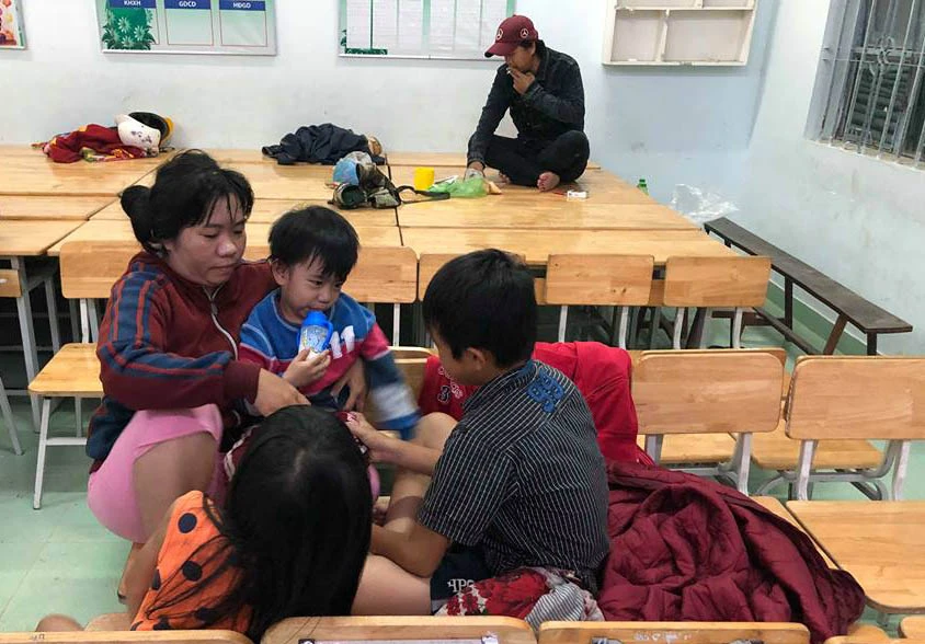 Người dân vùng có nguy cơ sạt lở ở xã Phước Đồng, TP Nha Trang sơ tán đến nơi an toàn.