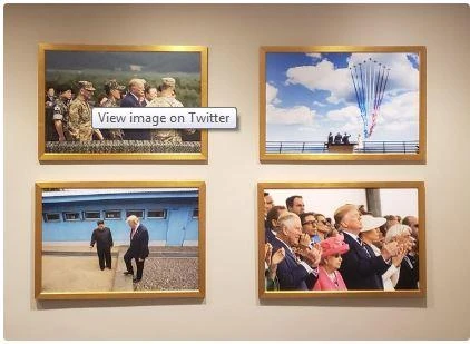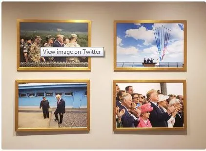 Nhà Trắng hôm 15-7 đã cho treo bốn bức ảnh mới đánh dấu những sự kiện quan trọng gần đây trong đó có bức ảnh chụp Tổng thống Trump và nhà lãnh đạo CHDCND Triều Tiên Kim Jong-un tại khu phi quân sự Bàn Môn Điếm ở biên giới liên Triều, báo Huffpost đưa tin.