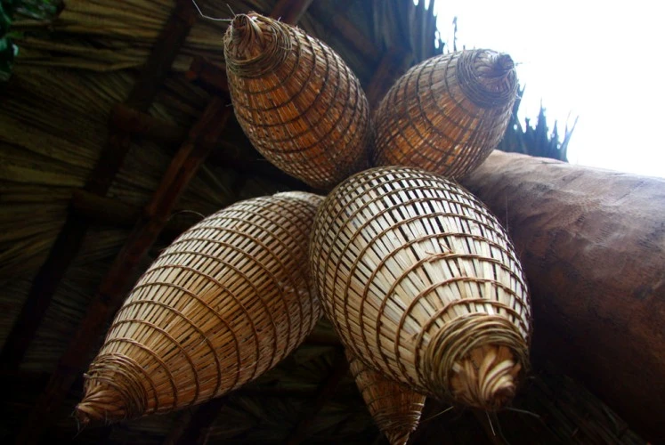 Hình ảnh về căn nhà vách tre, mái lá cọ ở giữa cuộc sống thị thành tấp nập hiện nay quả thật hiếm thấy, ngay cả vùng quê Bắc bộ. Những dụng cụ như cối xay gạo, thúng, mủng, nong, nia, L tôm, áo mũ đi mưa bằng lá, bồ đựng gạo… cùng với các trò chơi dân gian như bập bênh, đánh đu vừa đẹp mắt, vừa độc đáo đang thu hút đông đảo du khách đến với Hoàng Thành Thăng Long trong những ngày đầu xuân.