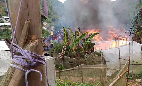 Hiện trường đám cháy tại nhà ông trưởng thôn Hảng Seo Sừ. Ảnh: A.Lìn