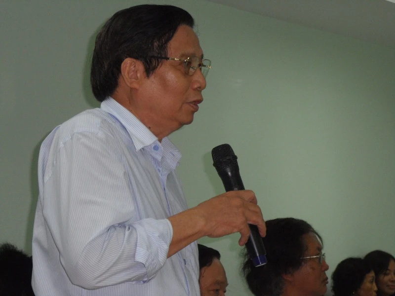 Nhà thơ Lê Quang Trang cùng những đồng nghiệp không khỏi xúc động khi kể chuyện về nhà văn Lê Văn Thảo. Ảnh: NGUYỄN TRÀ