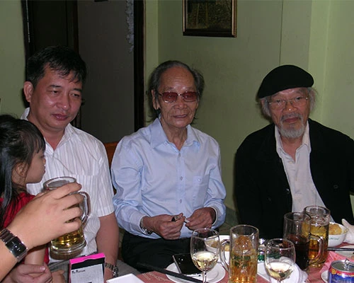 Trong lễ mừng thọ 80 tuổi nhà văn Thái Vũ (áo xanh) - Ảnh NT