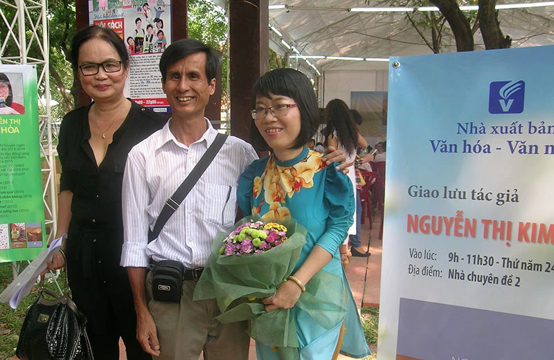 Nhà văn Bích Ngân - bà đỡ của Tủ sách Văn học 8x; thầy giáo Nguyễn Đức Thạch - người thầy, cha nuôi của nhà văn trẻ Nguyễn Thị Kim Hòa. Ảnh: NGUYỄN TÝ
