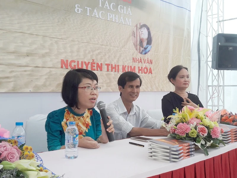 Nhà văn Kim Hòa giao lưu tại buổi ra mắt sách. Ảnh: HÀ PHƯỢNG