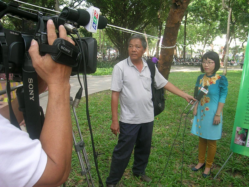 Tác giả Nho đắng trả lời phỏng vấn của Đài Truyền hình TP.HCM (HTV). Ảnh: NGUYỄN TÝ