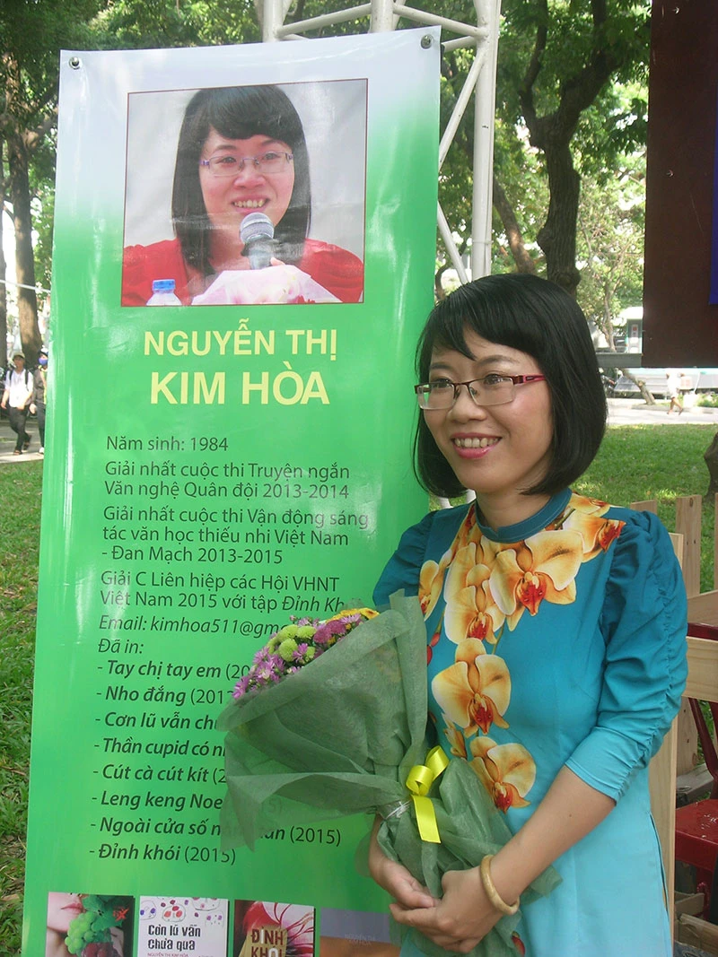 | Nhà văn Nguyễn Thị Kim Hòa (SN 1984), sinh ra tại Ninh Thuận, đã có nhiều cuốn sách ra mắt như Tay chị tay em (2011), Nho đắng (2012), Cơn lũ vẫn chưa qua (2014). Là một trong những tác giả trẻ thế hệ 8x đạt nhiều giải thưởng về văn học nghệ thuật: Giải nhất cuộc thi Truyện ngắn Văn nghệ Quân đội 2013-2014, giải nhất cuộc vận động Sáng tác văn học thiếu nhi Việt Nam - Đan Mạch, giải C Liên hiệp các hội VHNT Việt Nam 2015 tập Đỉnh khói. |