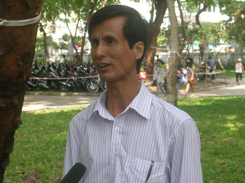 Thầy giáo Nguyễn Đức Thạch trả lời phỏng vấn của Đài Truyền hình TP.HCM (HTV). Ảnh: NGUYỄN TÝ