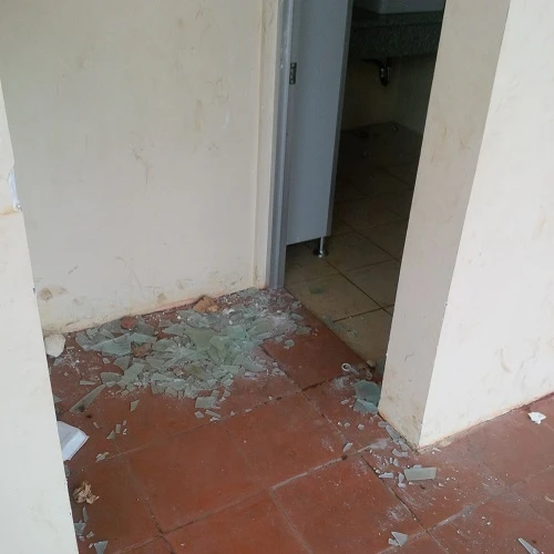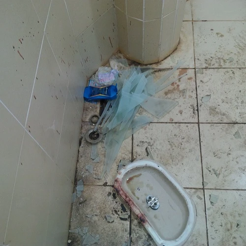 Khu nhà vệ sinh vụn kính bể nát khắp nơi
