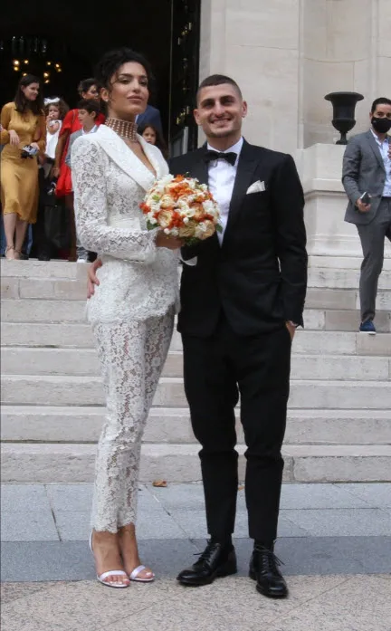 Lễ cưới của Verrati có sự tham dự của cựu đệ nhất phu nhân nước Pháp Carla Bruni. Sau màn bắn pháo hoa hoành tráng, cô dâu xuất hiện trong bộ váy cưới màu trắng lộng lẫy, còn chú rể Verratti rất đẹp trai đúng chất Ý trong bộ đồ vest đen.