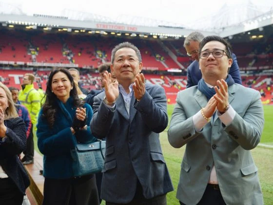 Cha con tỉ phú Vichai trên sân King Power của Leicester City.