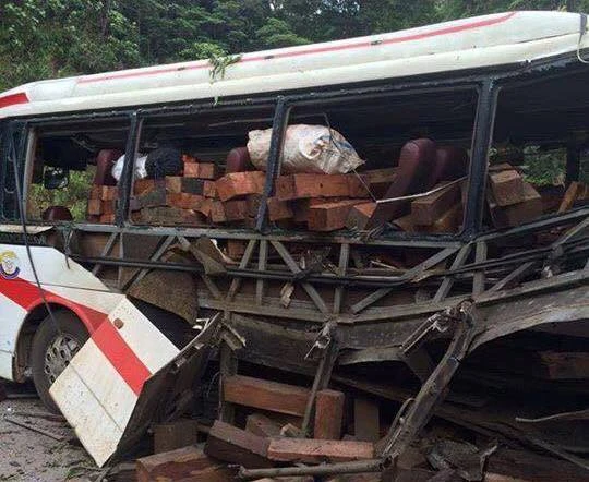 Hiện trường cho thấy chiếc xe bị hư hỏng nặng và trên xe chở nhiều gỗ.